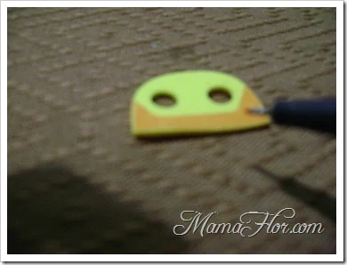 5. Pintar encima de la pieza celeste con plumón rojo, solo dejamos dos círculos pequeños porque aparentemente son los ojos.