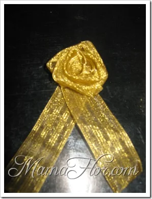 - Existe otra opción haciendo una rosa de organza y pegarle tiras colgantes.