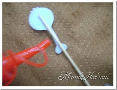 6. Por la parte reversa, pegar el palo de brochetas.