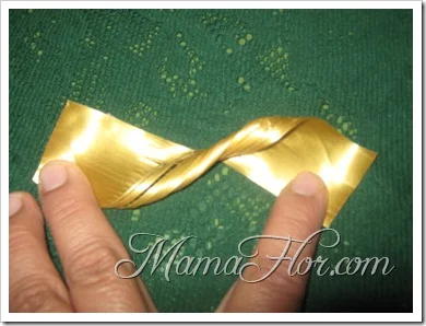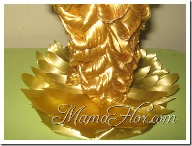 - Cortar 40 piezas de 4 cms y cortarlos dándole la forma de hoja, como se muestra a continuación, y se pegan en la parte inferior por toda la circunferencia..