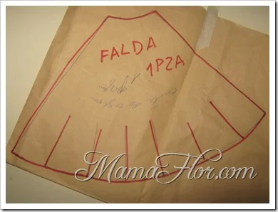 - Molde de la falda imprimir y pasar al cartón dúplex, cortar las lineas verticales de la parte inferior de la falda.