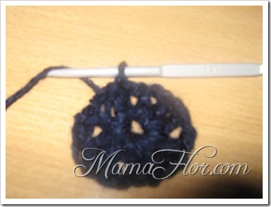 - Tejer un punto entero, en adelante tejer un punto entero y una cadena, en total son 9 puntos enteros dentro del aro.