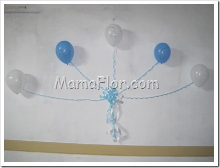 Inflar los globos uno a uno y amarrar de manera independiente, enseguida pegar en forma de una abanico con ayuda dela cinta masketing, así como se observa en laimagen.