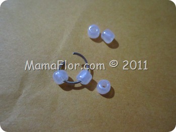 - De otro lado colocar el alfiler dentro de la perla y doblar las puntas formando una argolla.
