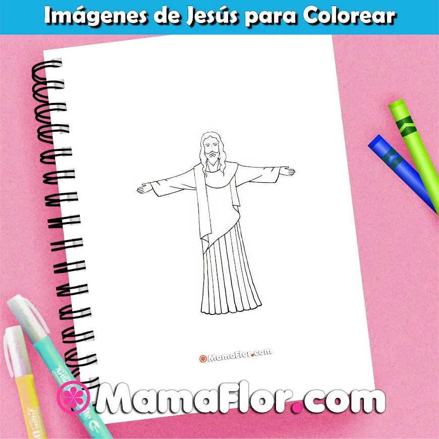 En MamaFlor.com nos encanta compartir contigo recursos gratuitos que te ayuden a disfrutar de tu familia, tu hogar y tu fe. Por eso, en esta ocasión te traemos 10 imágenes de Jesús para colorear, que son unos diseños muy bonitos y variados de Jesús en diferentes momentos de su vida, en alta calidad, ideal para imprimir.